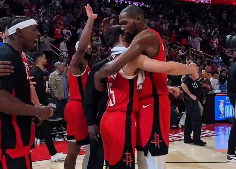 小伙子你是功臣!杜兰特申京赛后拍谢泼德的脑袋致意 范乔丹转发