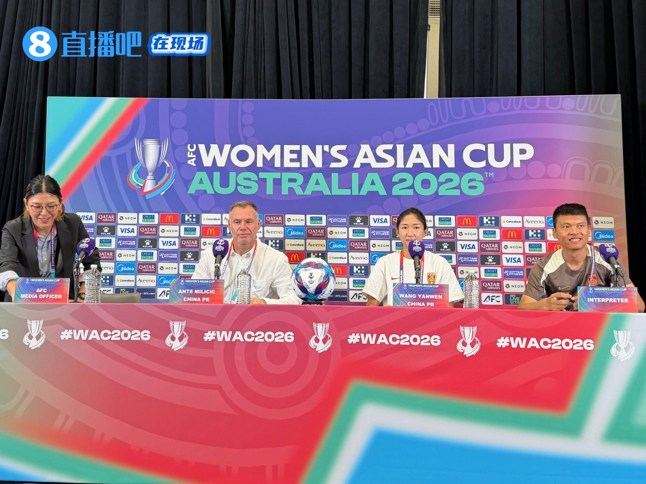 03月16日讯 中国女足对阵澳大利亚的亚洲杯半决赛将于明日18:00在珀斯体育场进行,现场直击女足赛前新闻发布会,主帅米利西奇携队员王妍雯接受采访。